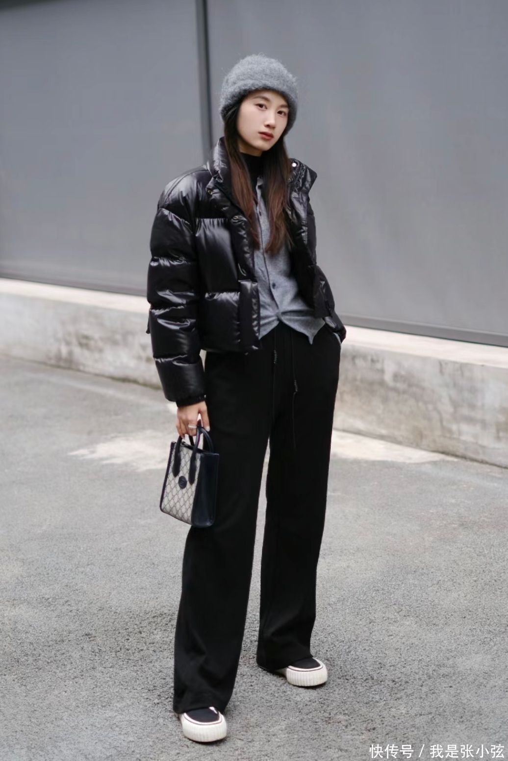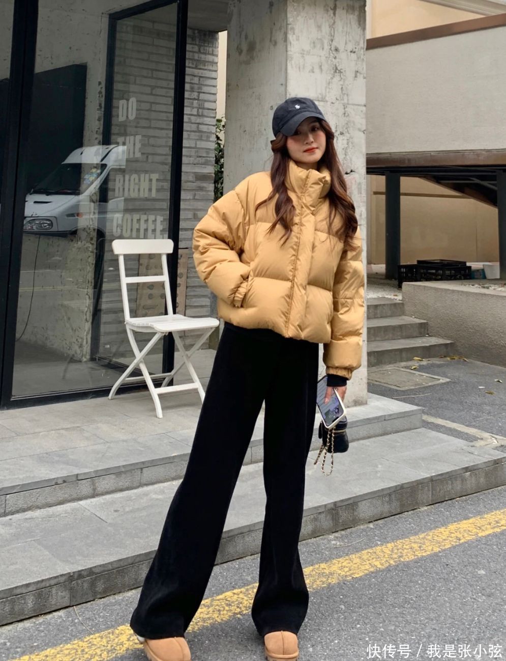 攻略②立领羽绒服+玄色阔腿裤+棒球帽