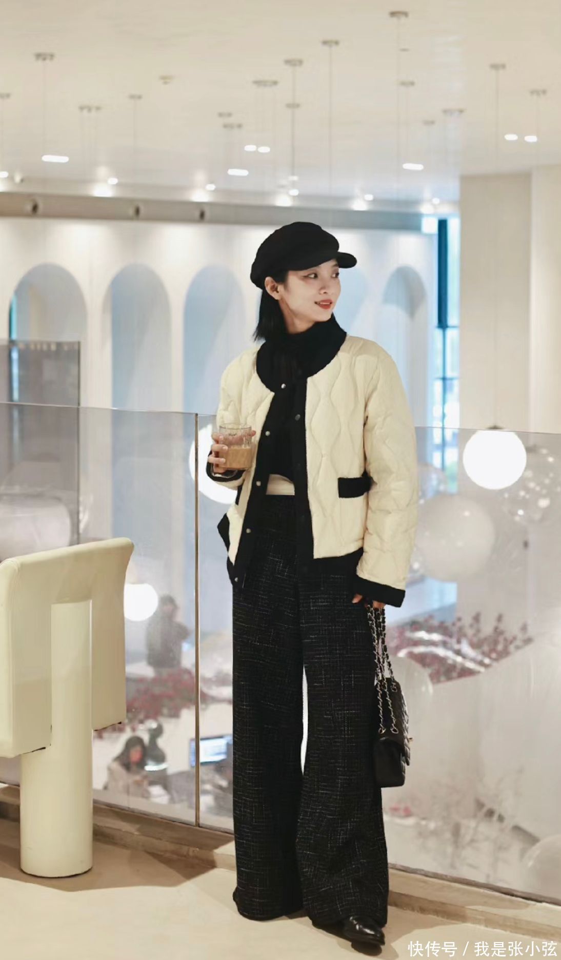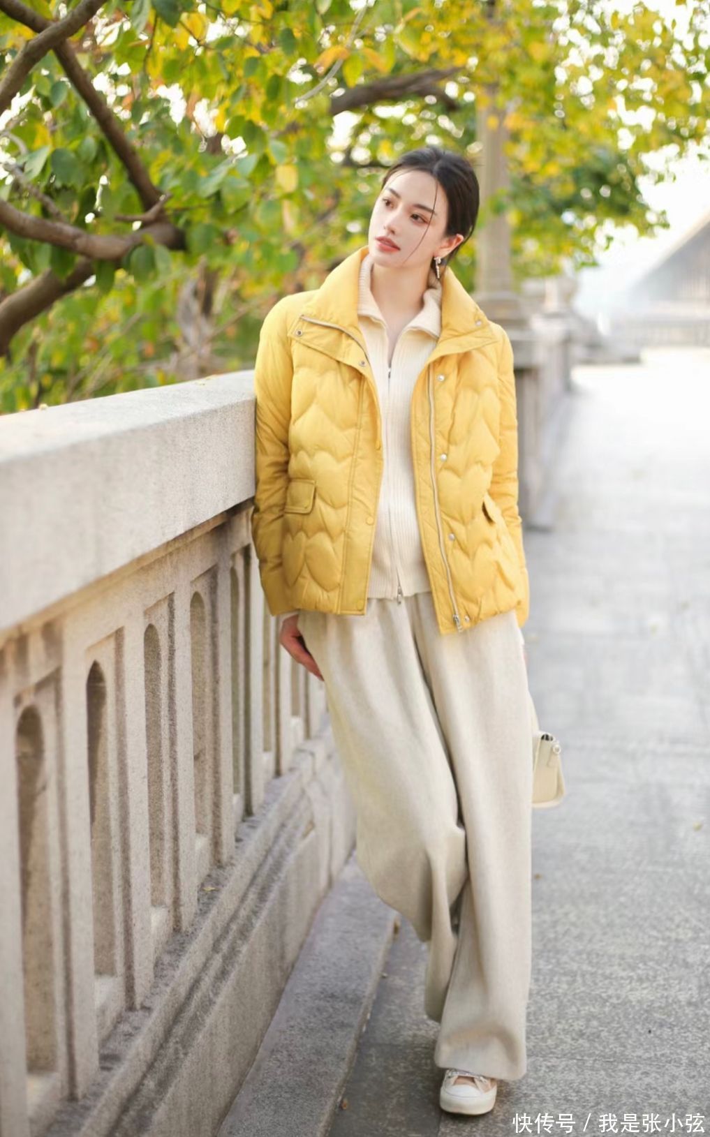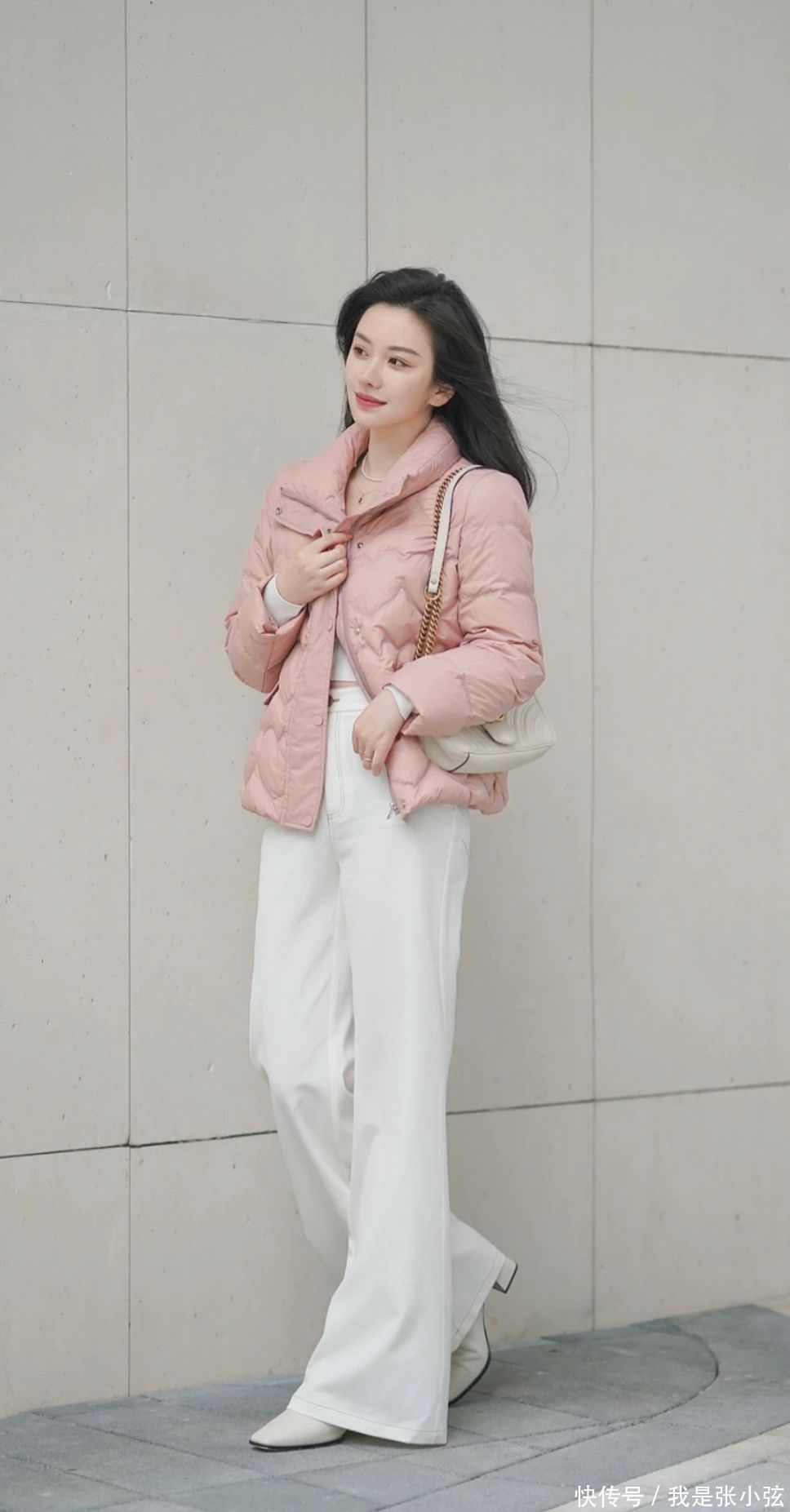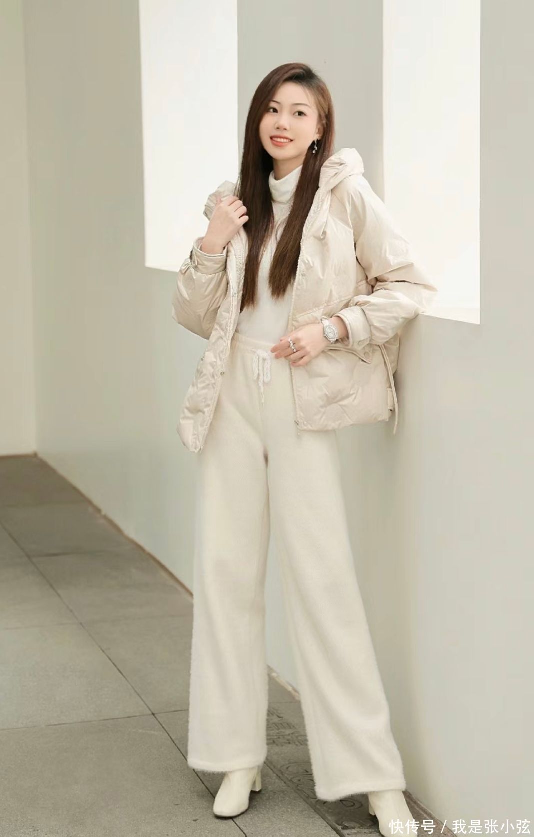 攻略①米白色羽绒服+毛衣+白色阔腿裤